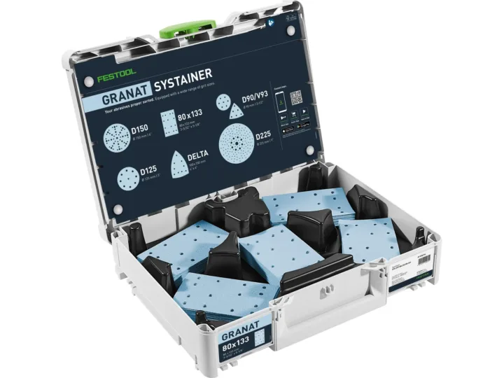 Slippappers-Systainern presenterar sig som ett idealiskt komplement till din slipmaskin. Med sitt breda utbud av kornstorlekar är den ett perfekt första steg så att du kan se vad Granat-slippappren klarar. 20x fyrkantiga Granat-slippapper från P60 till P220 finns alltid nära till hands. Naturligtvis är innehållet i slippappers-Systainern ordnat efter kornstorlekarna. Varje fack har sin plats så att du snabbt hittar rätt korn. Eftersom den är lätt att fylla på kan du alltid komma åt den kornstorlek du vill ha. Systainern skyddar dina slippapper mot yttre påverkan som damm, stänkvatten och skador. Den gör också att du enkelt kan transportera slippappren och koppla den på andra Systainrar – det ger ett professionellt intryck på dina kunder. Från verkstaden till byggarbetsplatsen, med slippappers-Systainern blir din arbetsvardag flexibel. Tack vare det beprövade T-LOC-vredet är det hur enkelt som helst att stänga, öppna och koppla. Systainrarna är kompatibla med och kan kopplas på alla föregående Systainer-generationer samt många maskiner och tillbehör. När du ska slipa, välj Granat: för perfekta ytor.